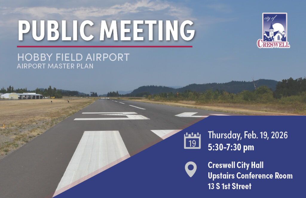 The City of Creswell, in cooperation with the Federal Aviation Administration (FAA), is in the process of updating the 2025 Airport Master Plan to address the airport’s needs for the next 20 years. The updated Airport Master Plan will provide specific guidance in making the necessary improvements to maintain a safe and efficient airport that is economically, environmentally, and socially sustainable.