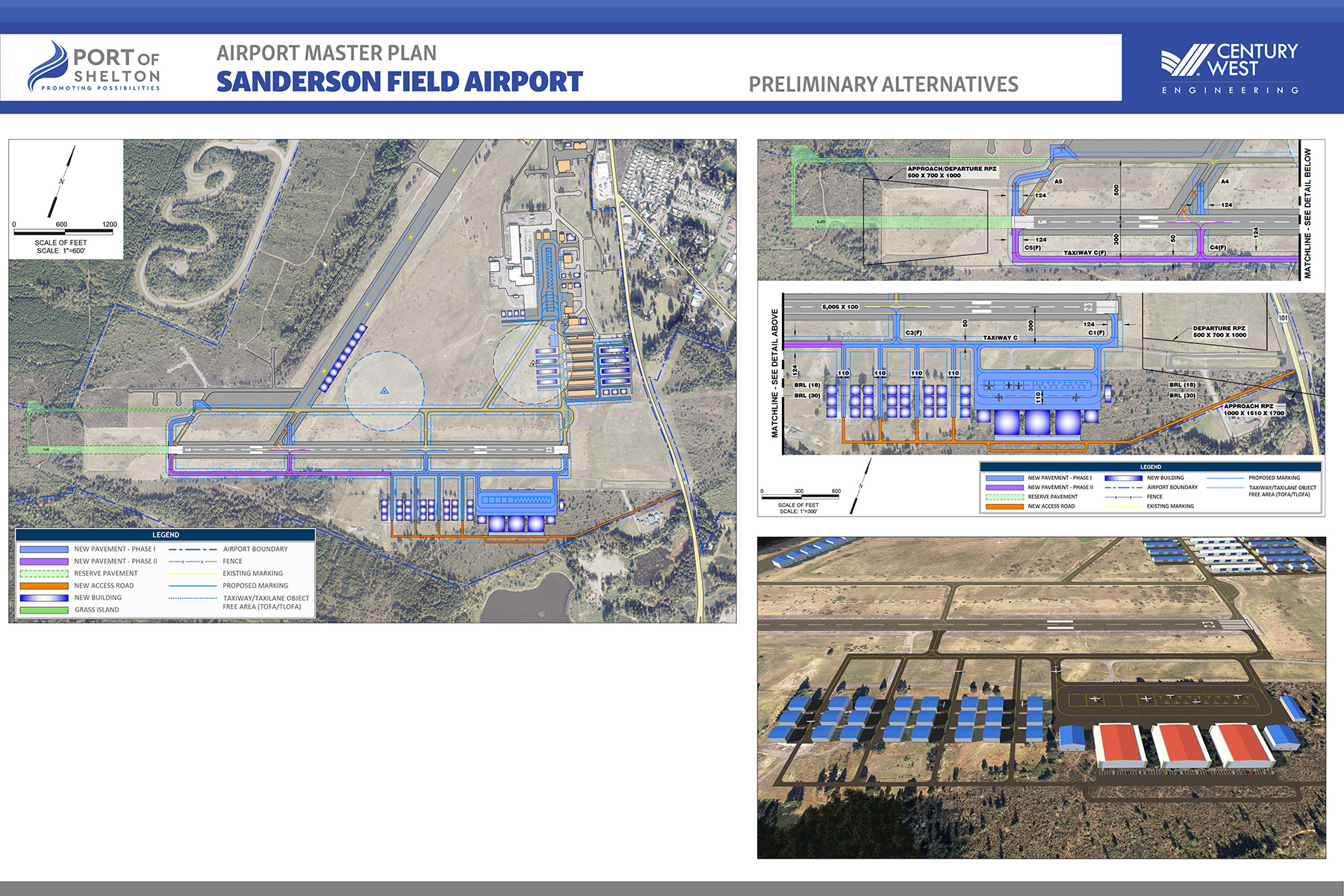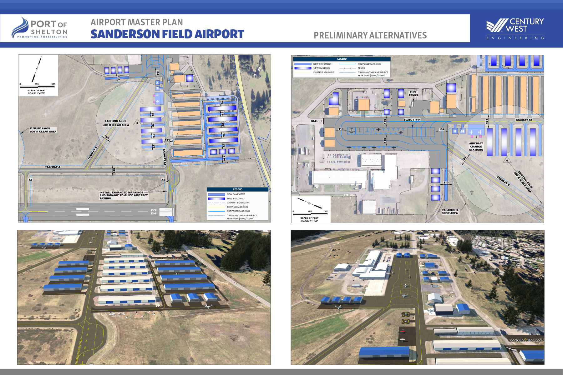 The Port of Shelton, in cooperation with the Federal Aviation Administration (FAA), is in the process of updating the Sanderson Field Airport Master Plan to address the airport’s needs for the next 20 years. The updated Airport Master Plan will provide specific guidance in making the necessary improvements to maintain a safe and efficient airport that is economically, environmentally, and socially sustainable.